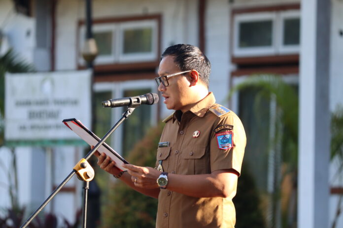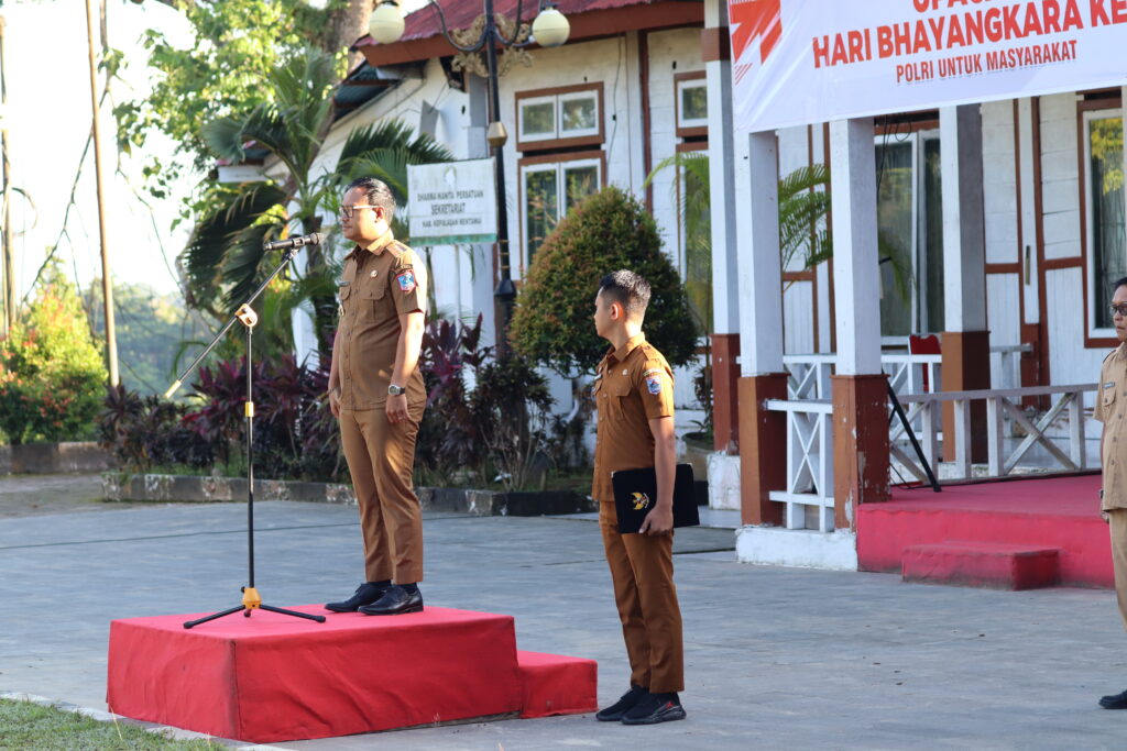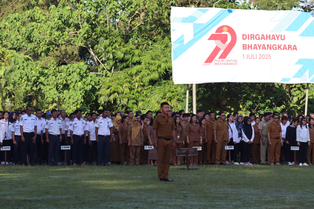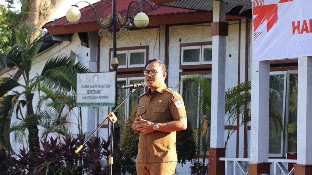Bupati Kepulauan Mentawai Rinto Wardana memimpin apel gabungan Aparatur Sipil Negara (ASN) dan Non-ASN di halaman Kantor Bupati, Senin (30/6/2025). Apel ini sekaligus memperingati Hari Keluarga Nasional (Harganas) ke-32 yang tahun ini mengangkat tema “Dari Keluarga untuk Indonesia Maju.”